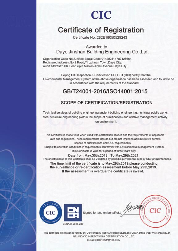 大冶金山建筑工程有限公司始建于1984年,屬鎮辦集體企業。1997年改制為大冶山建筑工程有限責任公司,屬股份制企業。2013年更名為大冶金山建筑工程有限公司,2018年3月公司資源重組,公司注冊資金達到10180.00萬元,公司法定代表人為劉瑞華。公司具有古建筑工程專業承包壹級、建筑工程施工總承包貳級、市政工程總承包叁級、鋼結構工程專業承包叁級資質。
